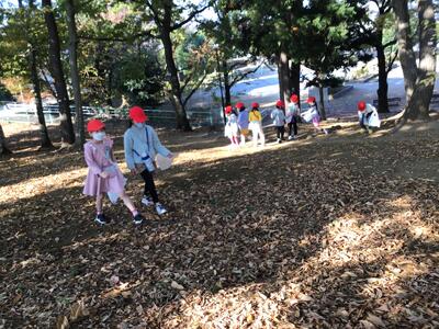 生活科の「秋とあそぼう」の学習で、公園探検に行ってきました。赤や黄色に色づいた木々に1年生の子ども達は、大喜びでした。どんぐりやまつぼっくりを見つけ、大事そうに袋に入れ、持ち帰る姿が見られました。