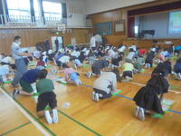 5、6年生を対象に体育館で「情報モラル教室」が行われいました。柏市少年補導センターの方が来て、お話をしていただきました。