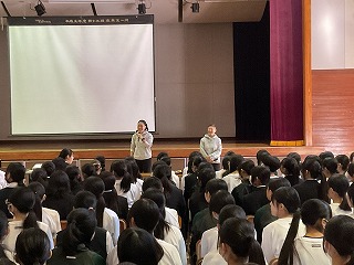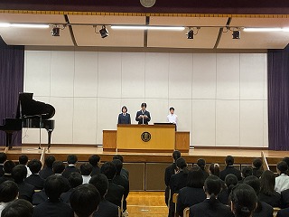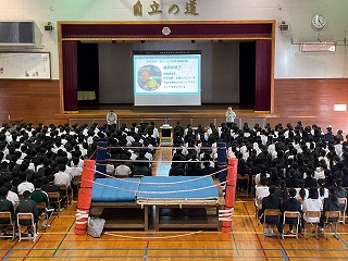 集会では学年ごとに内容を分けて講義が行われ、1年生には「デートDV」について、2,3年生には「デートDV」と「正しい避妊方法」について、年齢や発達段階に応じた分かりやすいお話をしていただきました。