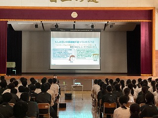 「相手を大切にするとはどういうことなのか」「自分の気持ちを守ることの大切さ」など、具体的な事例を交えながらの講義に、生徒たちは真剣な表情で耳を傾けていました。