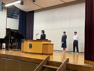 式の最後には全校での校歌合唱。体育館に響く歌声が、2学期の締めくくりにふさわしい、力強くも温かい雰囲気を作り出していました。明日からは待ちに待った冬休み。安全に気を付けて、充実した毎日を過ごしてほしいと思います。