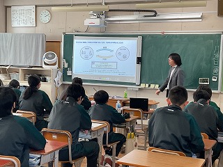 仕事の内容だけでなく、やりがいや苦労、仕事に就くまでの道のりなど、実体験に基づいたお話に、生徒たちは真剣な表情で耳を傾けていました。