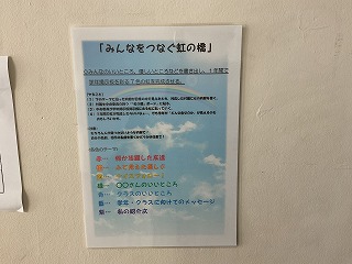 「みんなをつなぐ虹の橋」が大きく成長してきました。一緒に過ごす仲間のよかったところや、きらりと光る瞬間の積み重ねが大きな虹をつくりあげています。