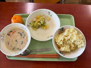 今日の給食は彩りも味わいも楽しめる洋風献立でした。スパイスの香りとまろやかさ、そしてさっぱり感がうまく組み合わさった一食でした。