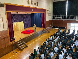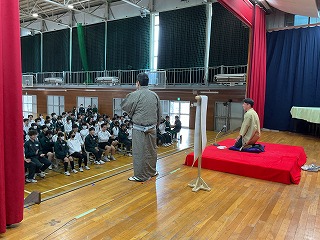 2年生は合同道徳の時間。教頭先生を講師に、青少年の犯罪について考えました。自分事として向き合い、これからの行動を見つめなおすきっかけになりました。