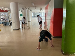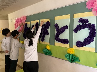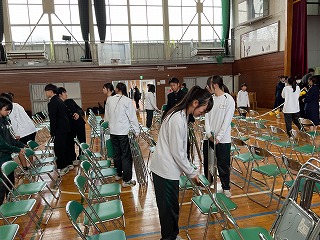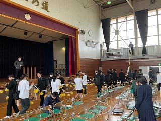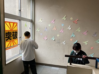 また、今日入試がない3年生は1時間のみ登校し、リボン作成や掃除をしました。
