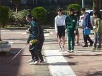 本日午前中、3回に分け、福祉教育「視覚障害擬似体験」を行いました。社会福祉協議会の方に目の不自由な方の話を聞いたり、白杖の使い方を教わり、二人一組になり、目の不自由な方とサポート役になり、マットの上や段差を声をかけてもらいながら体験しました。「怖い」、「見えない」などの声も聞こえてきていました。街中でサポートできそうなときには是非この体験を生かしてほしいと思います。