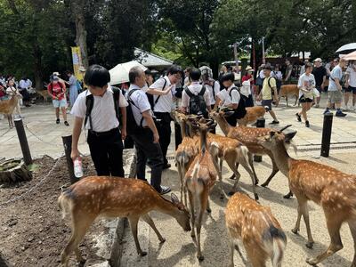 修学旅行1日目、奈良を中心に班別行動を行いました。柏は終日強い雨でしたが、奈良では天気に恵まれ、生徒もほっとしたようです。それぞれの班が時間をかけて計画した班別行動でした。計画通りに進んだ班もあれば、計画を変更しなければならなくなった班もありました。いずれも良い学びとなったことでしょう。本日の反省を生かして、明日の京都班別行動も頑張って欲しいと思います。