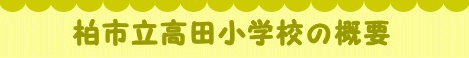 〒277-0861 千葉県柏市高田376-3 学校のすぐ隣を流れる大堀川周辺には遊歩道が整備され緑豊かな畑や丘陵・森林がある自然豊かな所です。 また、四季折々の風景や動植物に接することができ、恵まれた自然環境や地域の伝統的な芸能文化や人材を活用した体験的な学習が可能な所です。 昭和52年4月1日 開校 児童数 455名(令和7年5月1日現在)