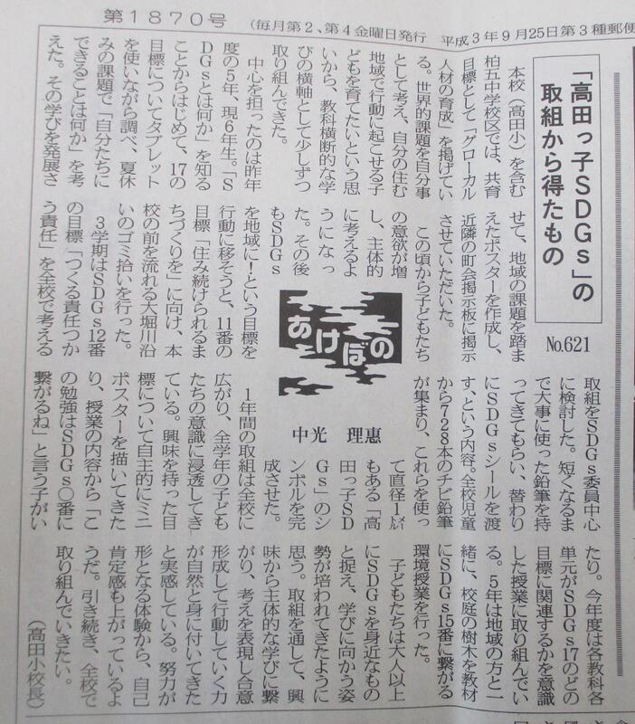 柏市民新聞に高田っ子SDGsの取組が掲載されました その1