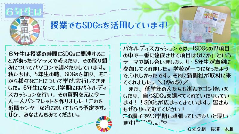校内で開催した様子が紹介されました。6年生が昨年からSDGsについて総合的な学習で取り