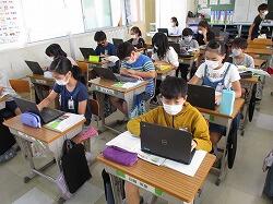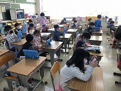6年生…端末を駆使して,さまざまな学習に生かしています。裁縫も手ぎわよく進めていました。