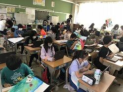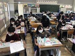 ・しいの木学級…「海の生き物」をテーマに絵を描いていました。