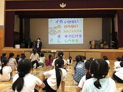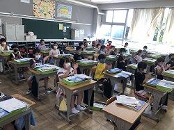 1年生…高田学習発表会でどんなことをやるのかについて話を聞いていました。発表が楽しみです。