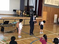 今日で令和3年度の課程が修了し、修了式では、学年の代表児童が修了証を校長先生からもらいました。