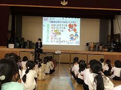 話を聞く姿勢がよくなってきた1年生。警察署の方の話も集中して聞くことができました。