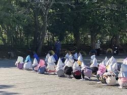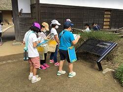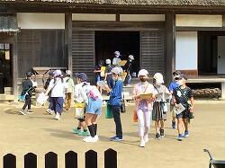 昔の町並みを再現した房総のむらでは,グループ行動を行いました。探検ノートを持ち,クイズに答えながら園内を回りました。たくさんのものを見て,さわって,学んだ後は決められた時間に集合してくる3年生。校外学習の二つ目のめあてである「時間を守る」もクリアです。