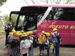 ・出発の会…初めてみんなで乗るバスに大興奮!出発時は小雨が降る中でしたが,笑顔いっぱいの出発となりました。
