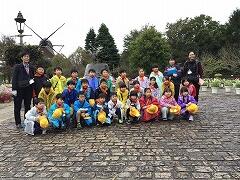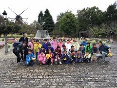 ・集合写真撮影…公園のシンボルである風車の前で,「はい,チーズ!」いい笑顔がいっぱいです。