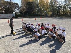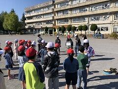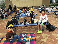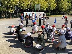 火災が発生したという想定で,校庭へ避難をしました。ハンカチやマスクなどで鼻と口をおさえ,「おはしも」の約束を守って避難することができました。