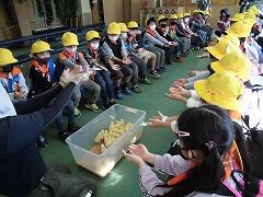 実行委員さんの進行で出発の会を行いました。朝一番ですが,話を一生懸命に聞く子どもたち。校外学習のめあての一つである「話をよく聞く」をよく意識できていました。