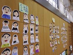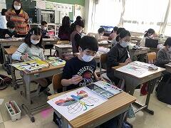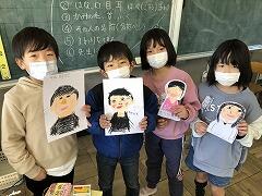 ・2年生…「6年生の似顔絵」がテーマです。来週の6年生を送る会に向けて体育館を装飾するための作品です。写真を見ながら,顔のパーツや髪型など細かい部分まで丁寧に描いていました。