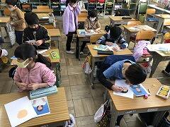 みんな一生懸命に部首や画数を調べて、辞典をめくっていました。