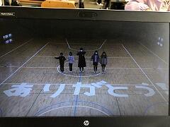 6年生は「在校生への感謝と応援メッセージ」最後はメッセージカードを体育館のフロアに並べて「ありがとう」の文字が完成しました。