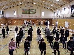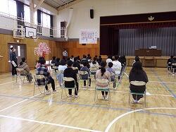 式の流れの確認や入退場の練習を行いました。