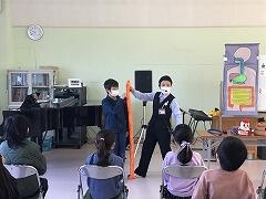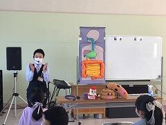 最初は「うんちの話」から始まって,恥ずかしそうにしていた子どもたちも,うんちが健康につながっていることを知り,真剣に話を聞いていました。