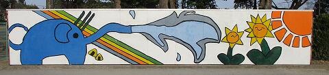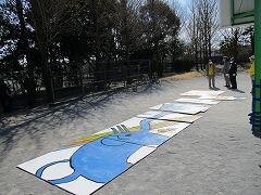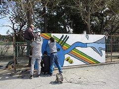 高田小学校創立45周年を記念して,6年生が投てき板の絵を描きました。