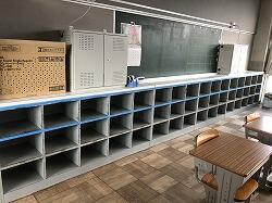 新しい教室,新しいくつ箱,新しいロッカーの準備はできました。あとは,学年が一つ上がったみなさんが元気に来るのを待つのみです。