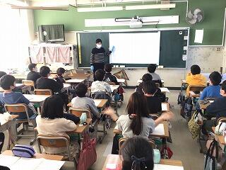5年生では、国際理解教育の学習の一環として、校長先生が特別授業をしていました。