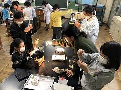 しいの木学級の皆さんが,調理実習をしていました。牛乳と砂糖,卵,ゼラチンを混ぜて,プリンを作っていました。「計量カップで量る」「かき混ぜる」「レンジで温める」などの作業を分担しながら進めていました。感染状況が落ち着き,体験しながら学ぶ時間が増えてきています。