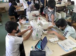 「次はここに通すんだよ!」「こんな持ち方をするとやりやすいよ!」というアドバイスをお互いにしながら,着々とミシンマスターへの道をかけ上がっていきます。また,今週はミシンボランティアの保護者の方にもご協力いただき,コツを聞いたり,見本を見せていただいたりしながら取り組んでいます。