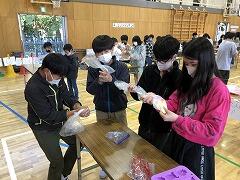 しいの木学級の皆さんが,調理実習をしていました。牛乳と砂糖,卵,ゼラチンを混ぜて,プリンを作っていました。「計量カップで量る」「かき混ぜる」「レンジで温める」などの作業を分担しながら進めていました。感染状況が落ち着き,体験しながら学ぶ時間が増えてきています。