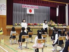 いよいよ入学式、入場曲にあわせて入場し、式での態度もとても立派でした。