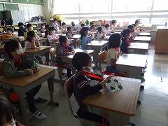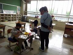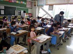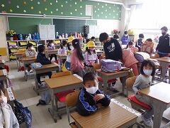 教室では、6年生のお手伝い係のお兄さん・お姉さんはいましたが、何でも自分でやろうとする1年生。意欲の高さをうかがうことができました。