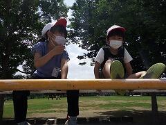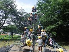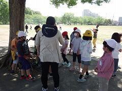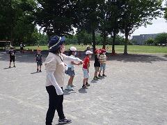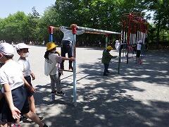 子ども達にとって最も身近な公共施設は学校です。 学校生活で、少しずつ公共の意識が育ってきています。今日は、学校から少しだけ活動の範囲を広げ、公園という場で遊びながら、公共の意識が高まっていくことを目指しました。