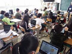 毎日、学級で充電しているのとwiーfi完備なので、授業ではワイヤレスで使うことができます。机の上もすっきりです。