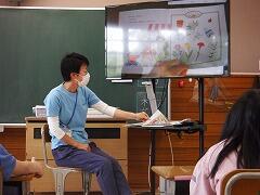 感染予防のため、本の側に寄ることができないので、投影機に写して工夫して実施しています。