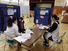 今日は、2年生が実施しました。養護教諭の倉先生の説明をよく聞いて検査している様子に「お兄さんお姉さんになったなぁ。」と感心しました。