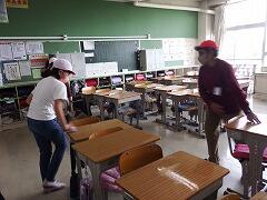 高田小では、赤白帽子をかぶって、掃除をすることになっています。