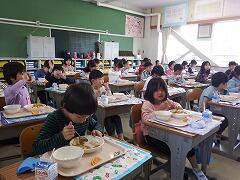 配膳時には、中光校長先生や教務主任の引地先生もかけつけてくれました。