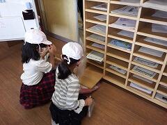 感染予防のため、本の側に寄ることができないので、投影機に写して工夫して実施しています。