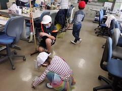 高田小では、赤白帽子をかぶって、掃除をすることになっています。