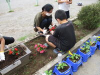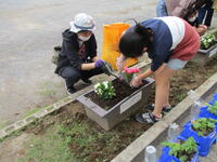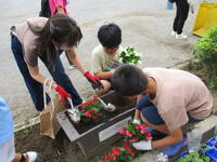6月6日(火)委員会活動の時間に、PTAの方々と栽培委員会の児童花壇に花を植えました。