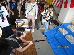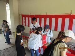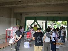 会館では,涼しいところで焼きそばや揚げたこ焼き,かき氷等を
