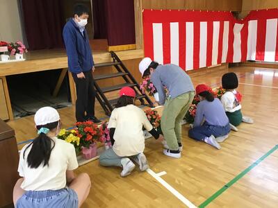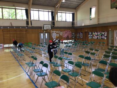 卒業式準備でも大活躍だった6年生が、今年度は入学式の前日準備も行いました。