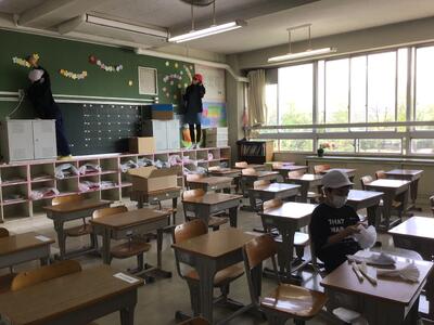 1年生の入学後は、1年生の教室で、朝の準備や掃除の手伝いも行います。